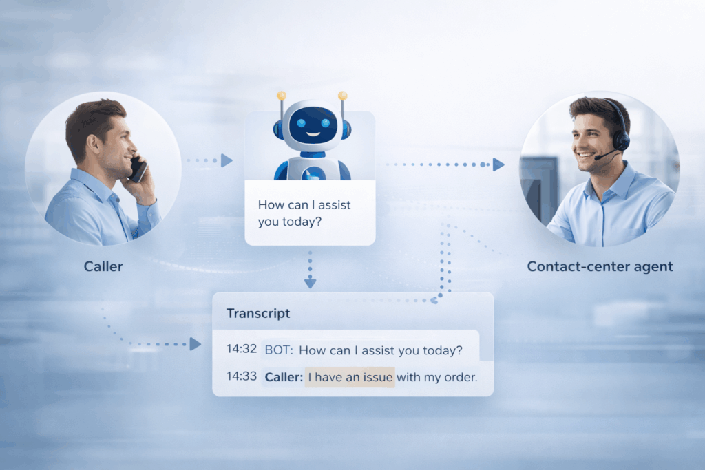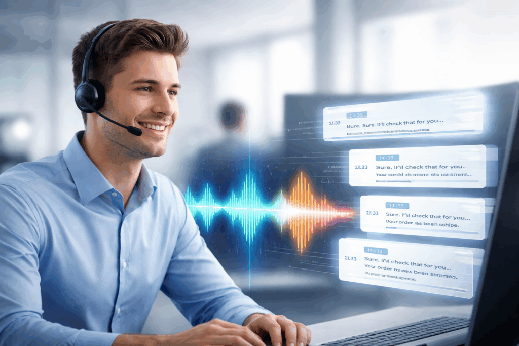 Telefonate zwischen Anrufer und den Contact-Center-Spezialisten werden automatisch in Textform transkribiert.