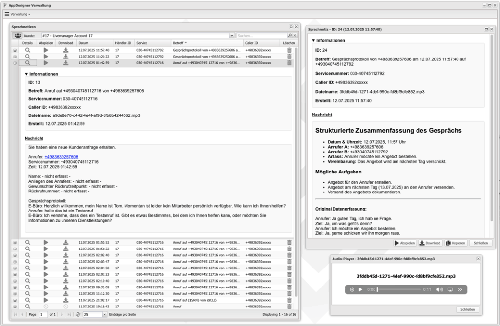 Verwandeln Sie Ihre eingehenden Telefongespräche (Audioaufnahmen) in einen echten Mehrwert für Ihr Unternehmen:
